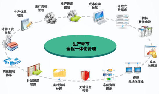 智邦国际生产制造行业一体化管理解决方案系统地解决了生产过程自动化控制和工艺管理、质量管理、部门协作等管理难题,为机械行业企业提供了全面生产信息化管理,使生产在受控状态下进行。该方案解决的生产环节管理难题如下图所示。