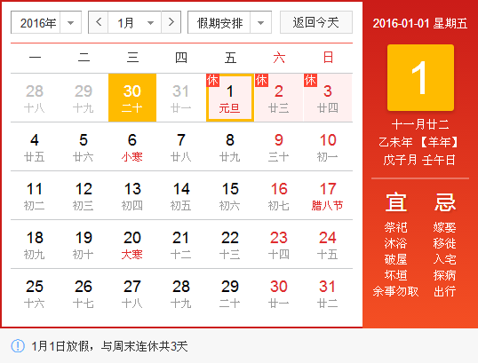 1月1日(星期五,元旦)、1月2日(星期六)、1月3日(星期日)放假调休,共3天。1月4日(星期一)照常上班。放假期间若给您带来不便,敬请谅解!