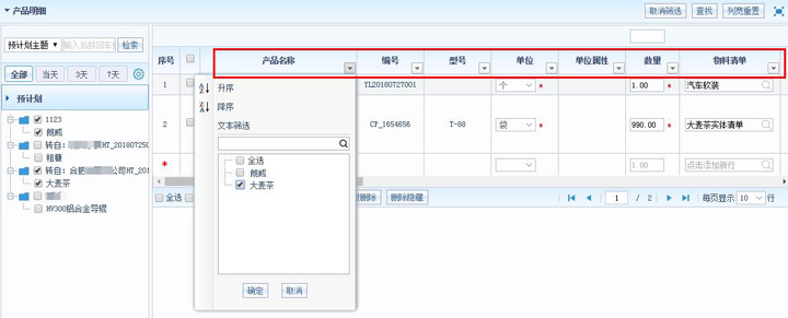 功能价值:智邦国际31.82版本,新增生产模块产品明细筛选功能,点击筛选,表头自动出现筛选按钮,全选、多选、单选、不选,或文本筛选,或升序、降序,甚至将这些条件组合进行筛选,全部支持,自带数据隐藏、删除隐藏、取消筛选等强大技能,再多数据,一键极速筛选,比表格还好用!