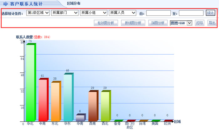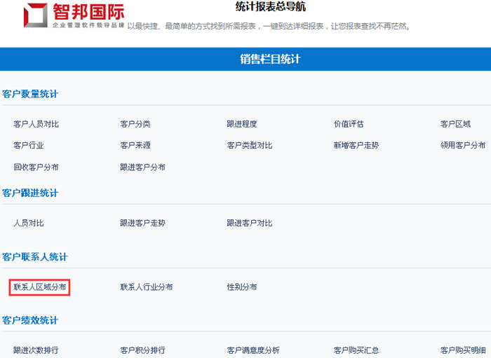 智邦国际ERP系统按区域智能统计分析客户联系人数量