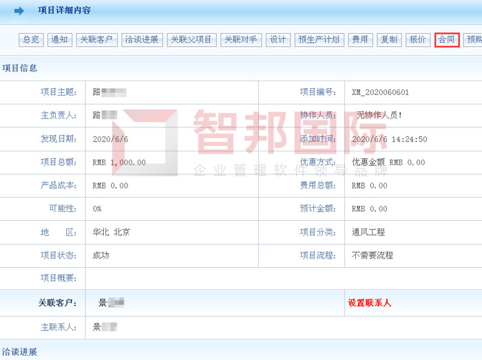 智邦国际ERP系统由项目一键生成合同