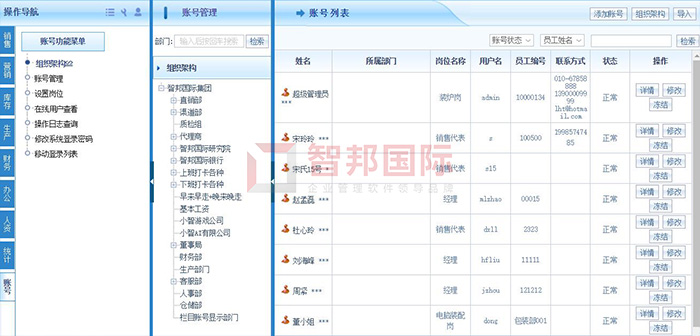 智邦国际ERP系统账号管理(局部图)